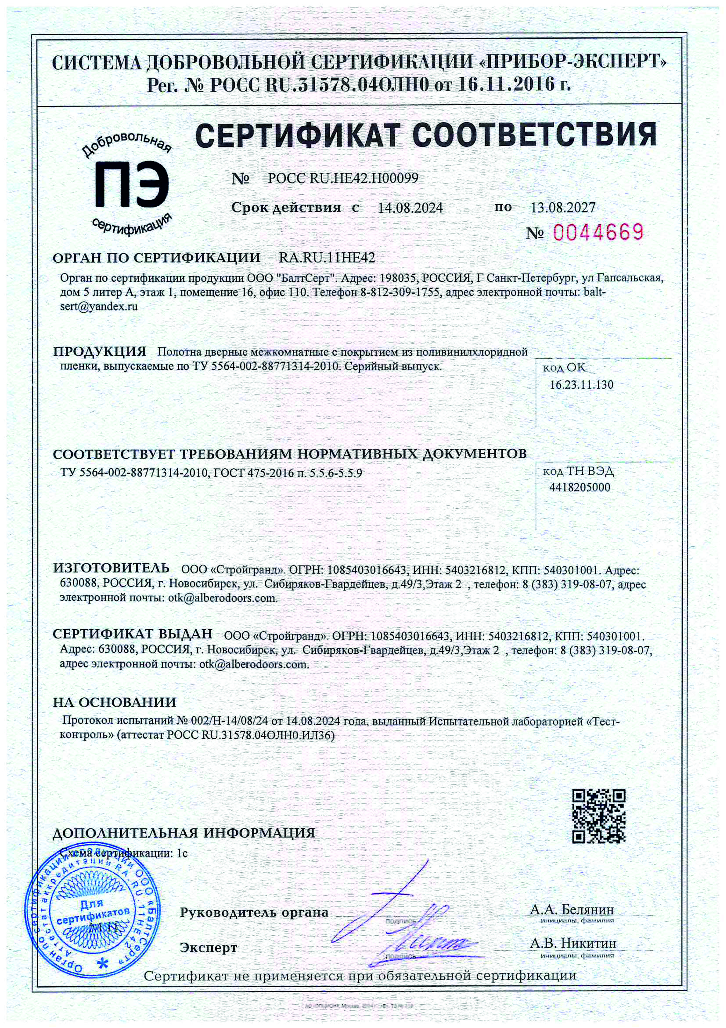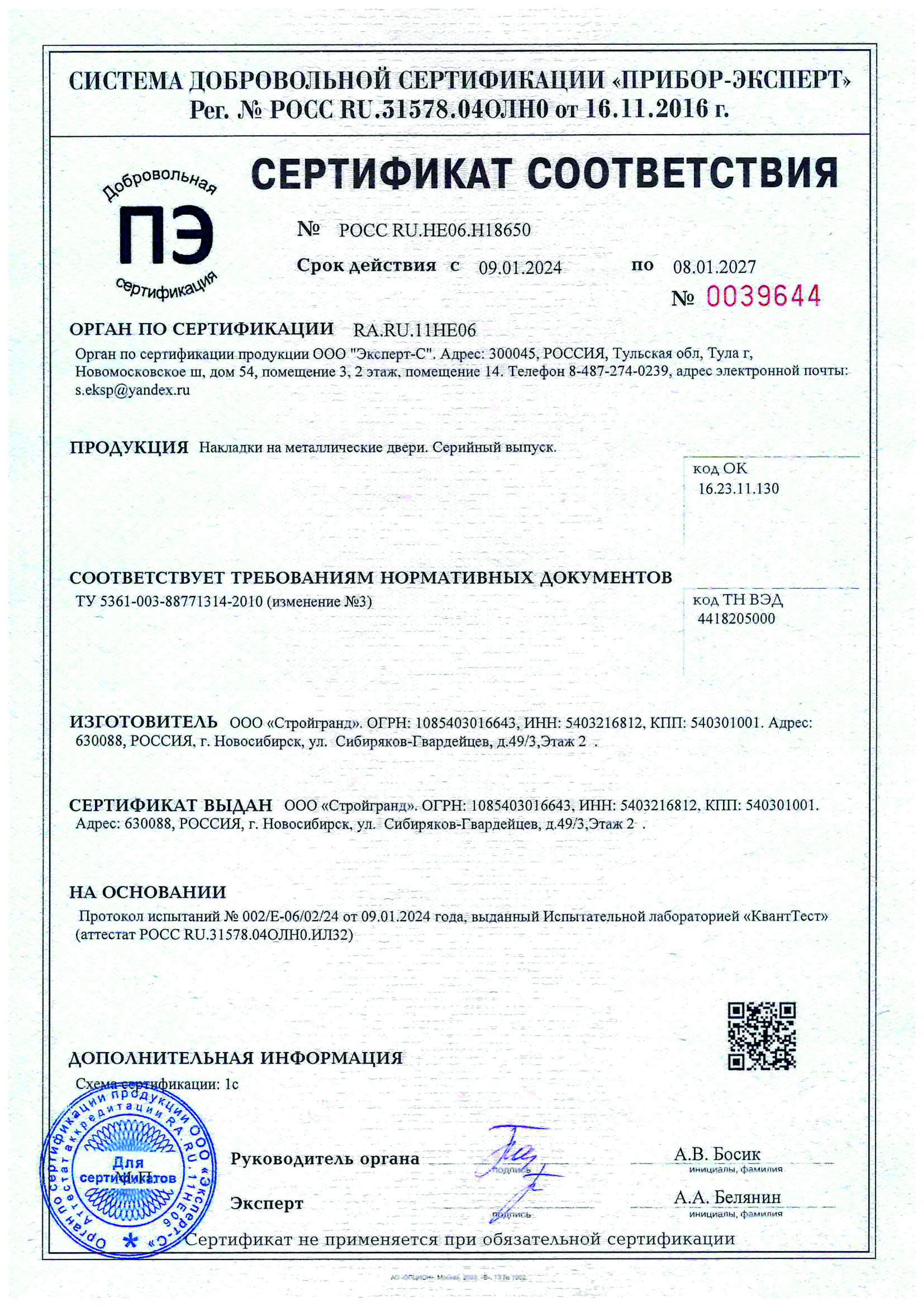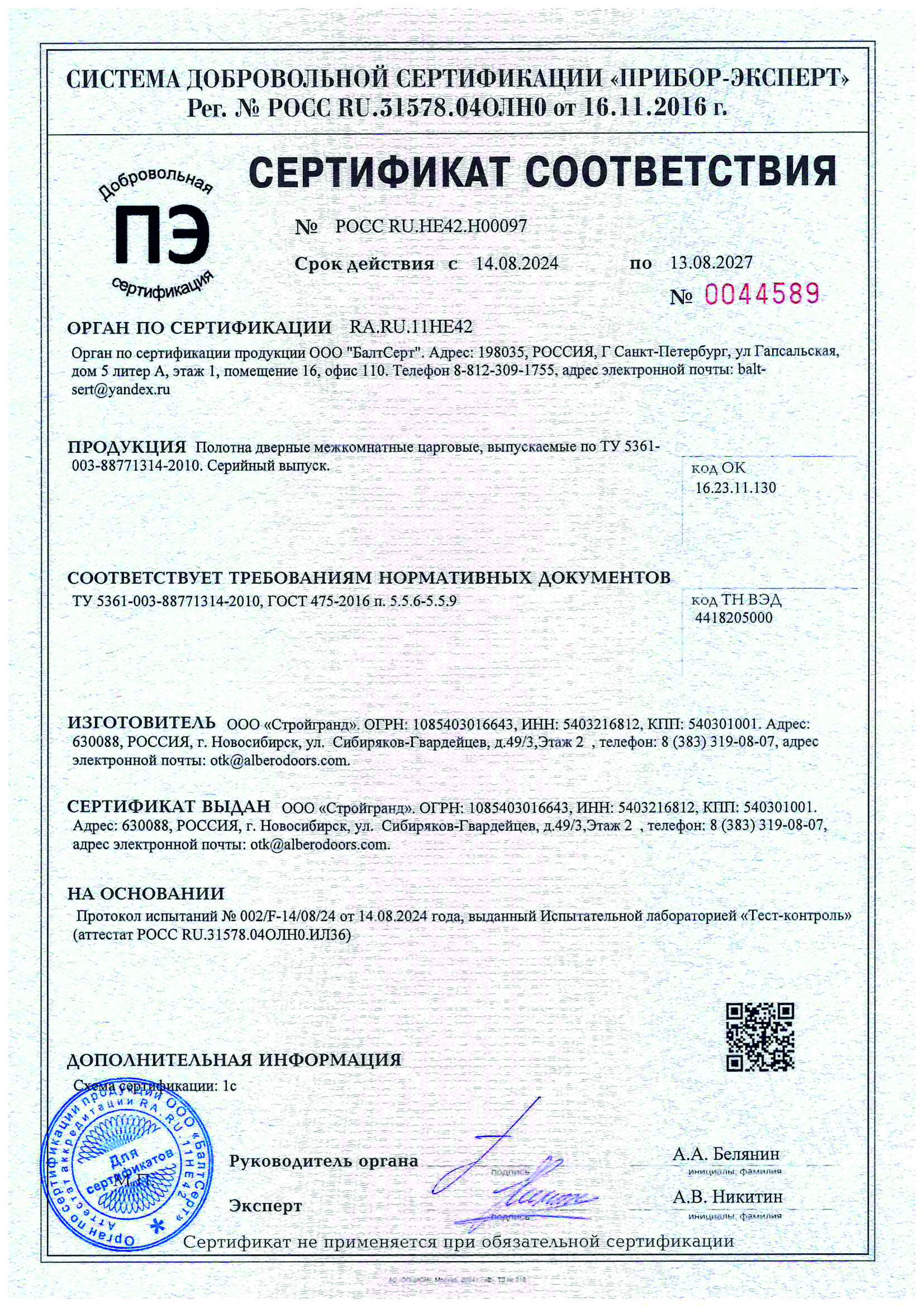 и наличие сертификатов соответствия