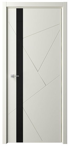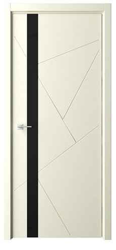 Дверь Геометрия-6 ширина 80 см Слоновая кость Эмаль Стекло черное кромка В цвет полотна в Балаково