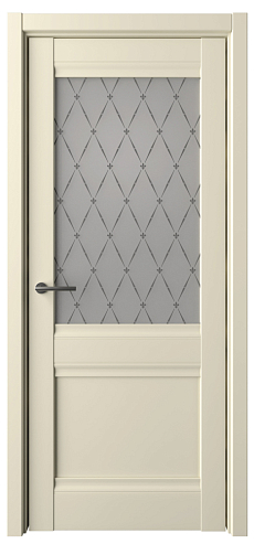 В остекленном варианте, в качестве остекления используется матовое стекло с художественным рисунком "Гранд". Идея рисунка соединить стильный ромб и благородный цветок «Лилия».